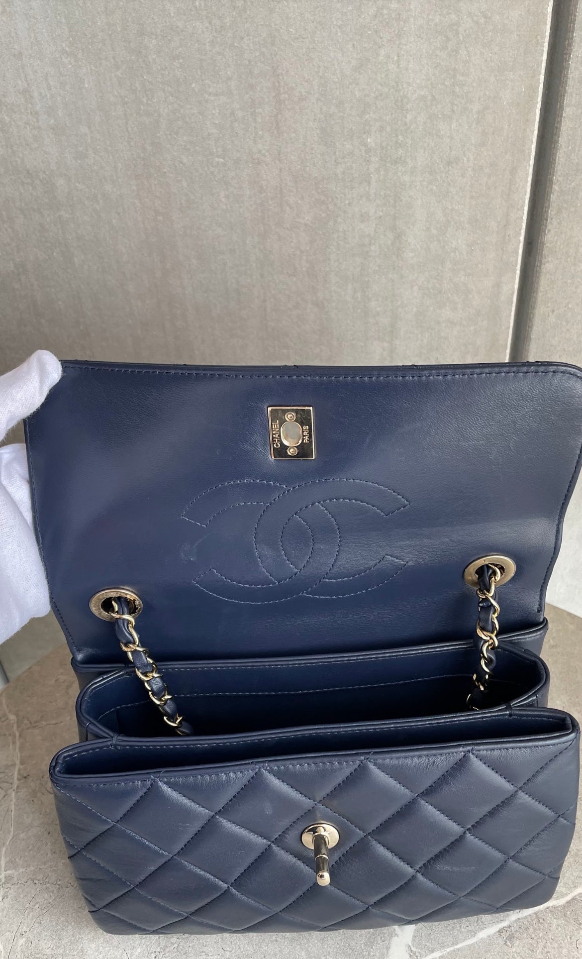 【CHANEL】トップハンドル/フラップバック/ネイビー #1237